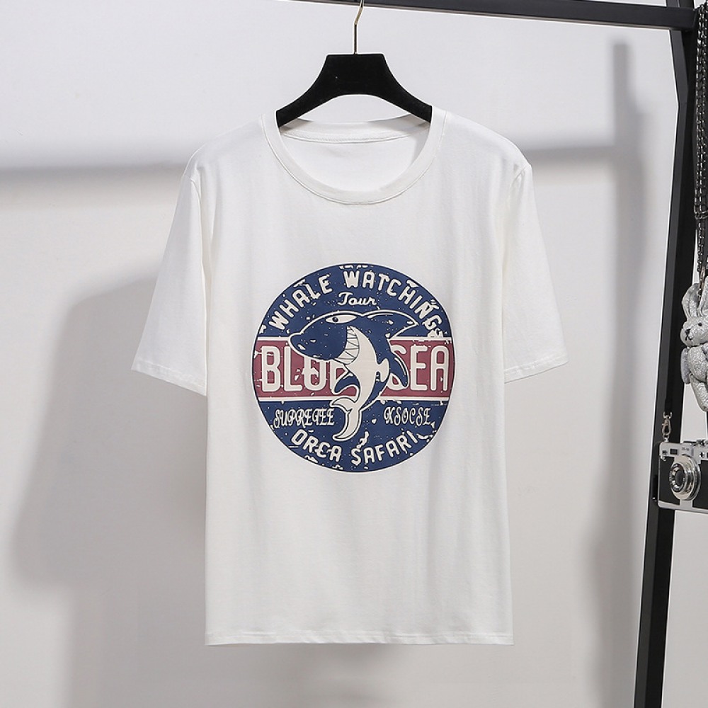 Summer Plus Size Women's New Loose and Thin and Fat Mm Extra Large Loose Print Round Neck Short Sleeve T-Shirt Women