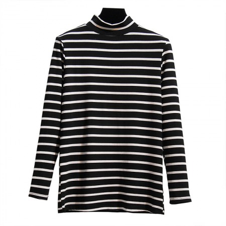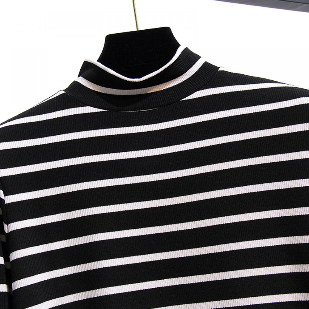 Autumn and Winter Fat Mm Extra Plus Size Women's Pit Strip Long-Sleeved T-Shirt Thin Striped Bottoming Shirt
