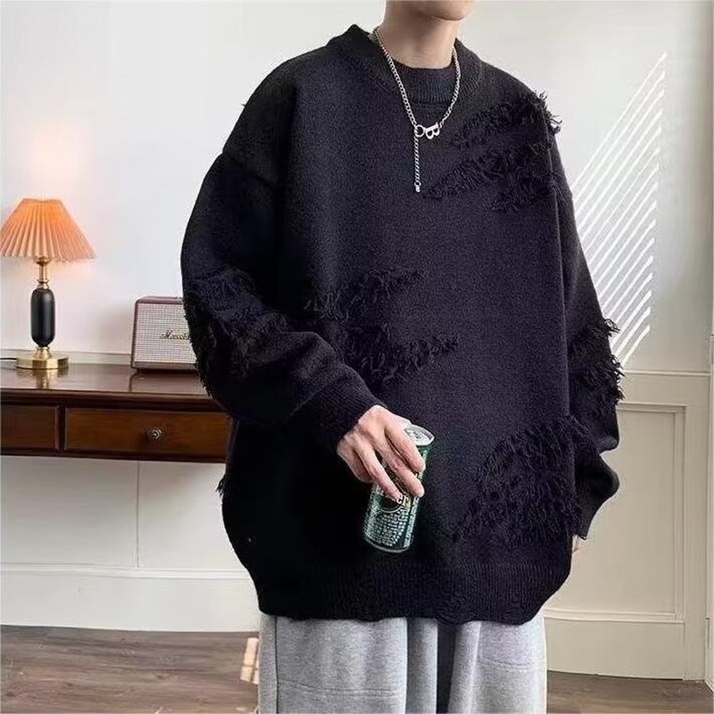 Men's Crew Neck Sweater Fleece-lined Thick Loose Knitwear