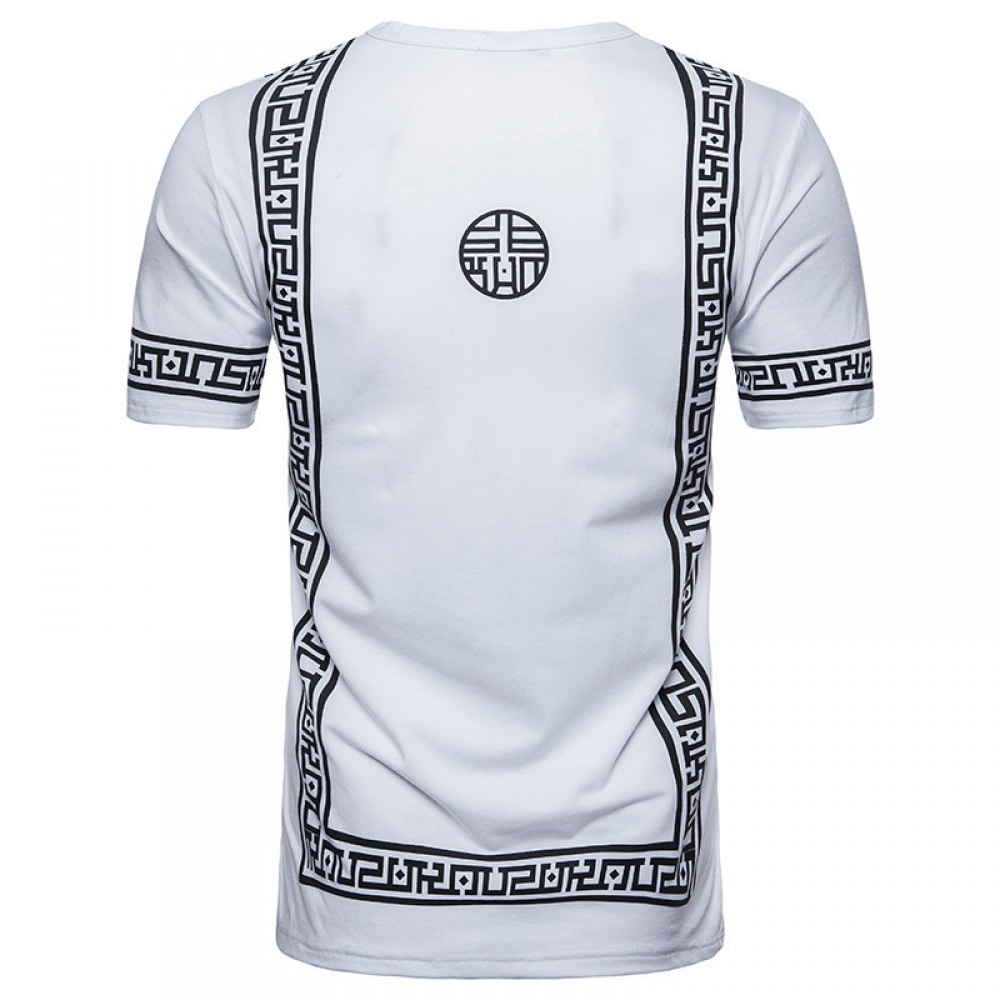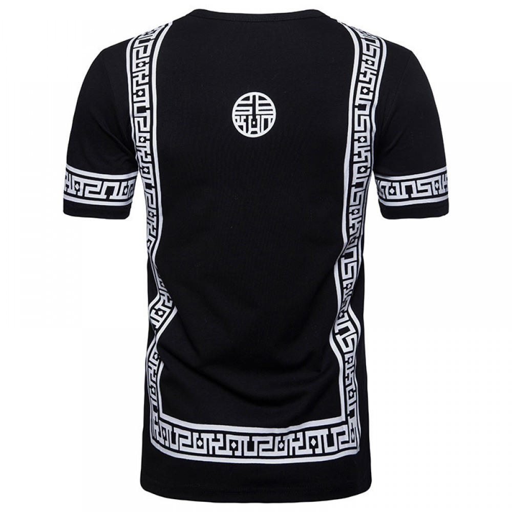 Men's High Street Style Double Zipper Long Round Neck T-Shirt Multicolor Large Size Short-Sleeved T-Shirt