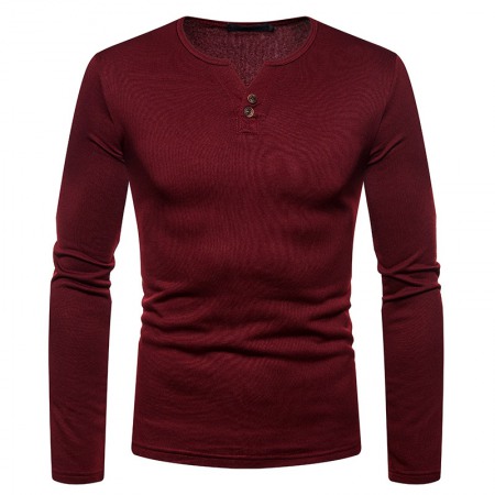 Men's Plus Size Plus Velvet Warm Henley Collar Long-Sleeved T-Shirt Bottoming Shirt