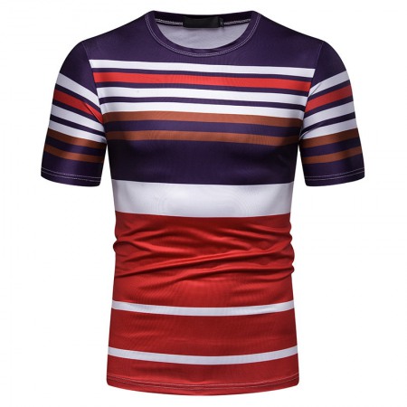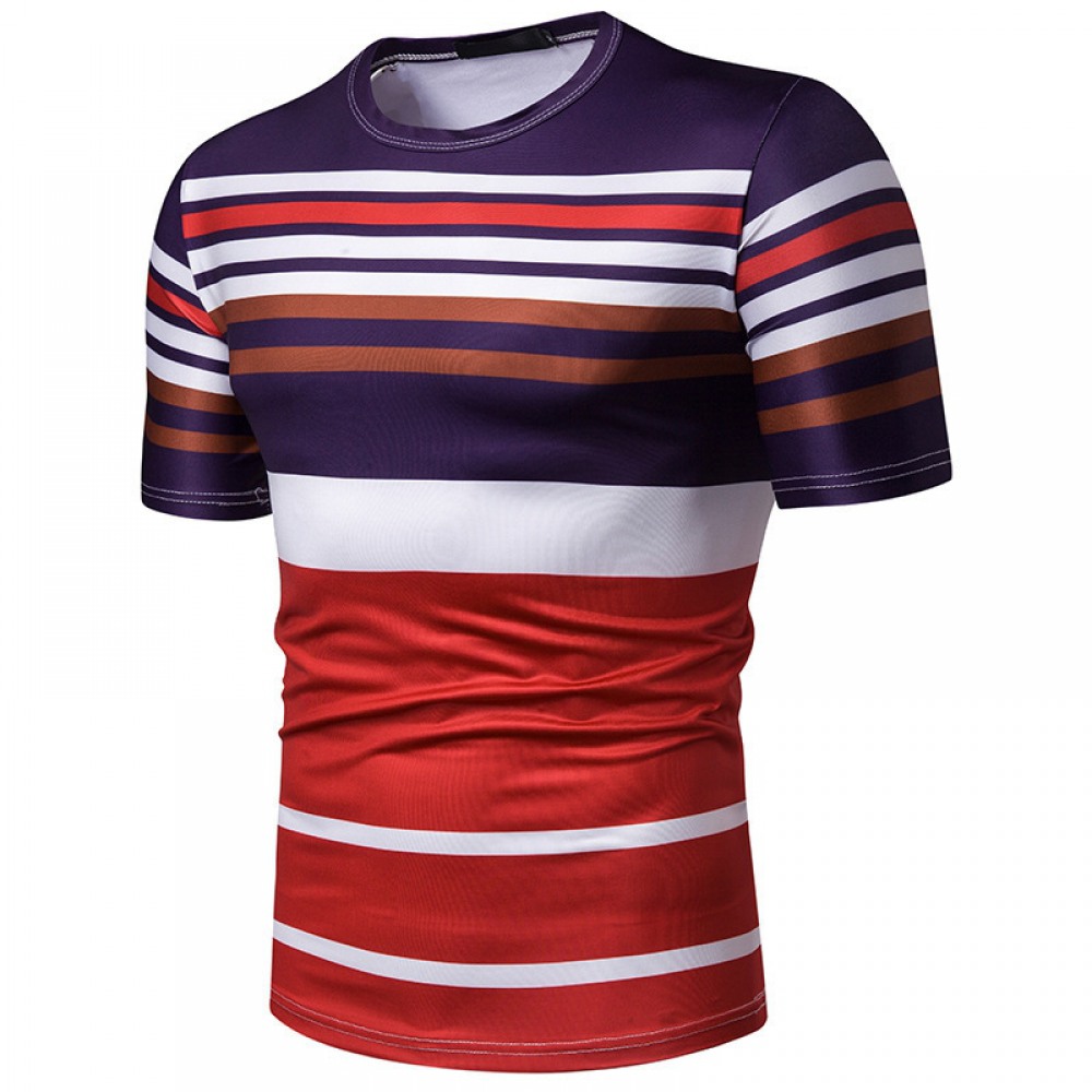 New Summer Men's Short-Sleeved T-Shirt Mens Contrast Striped Slim Casual T-Shirt