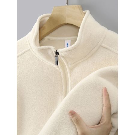 Solid Color Loose Drop Shoulder Stand Collar Sweatshirt Men's Zipper Jacket