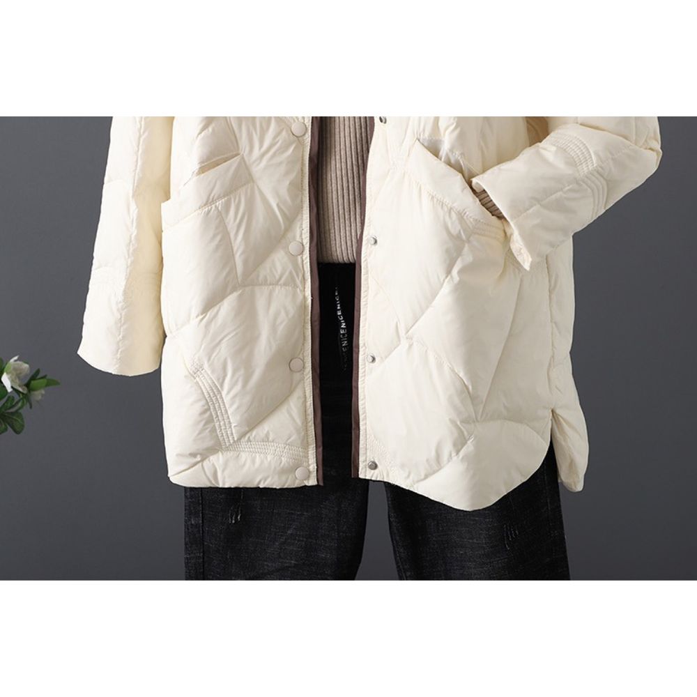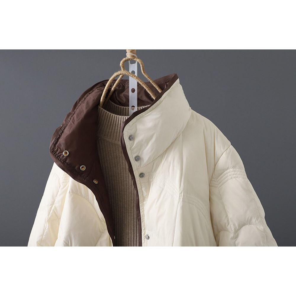 Retro Artistic Mid-Length Stand Collar Down Jacket For Women In Winter
