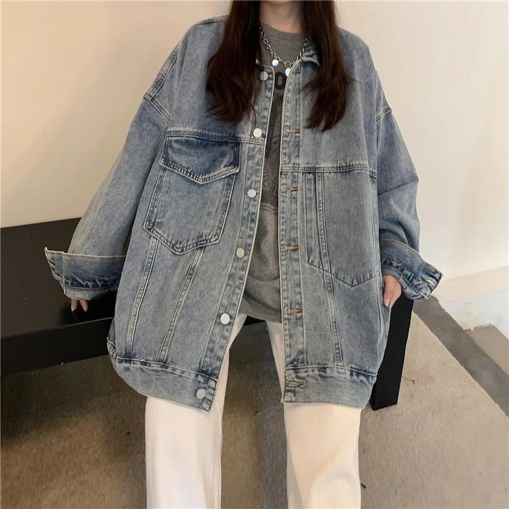 Retro BF Style Large Pocket Denim Jacket Women's Jacket Tops