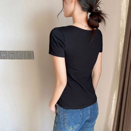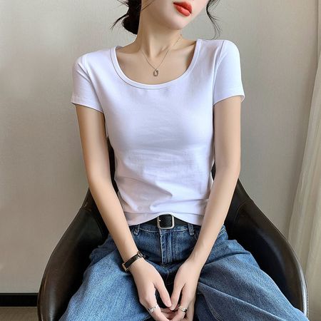 Square Neck Short Sleeve T-Shirt Slim Fit Cropped Top